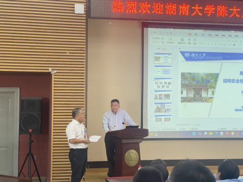 9月19日上午,应王凤来教授邀请,湖南大学土木工程学院陈大川教授以《房屋保险制度下结构安全检测鉴定系列工作的思考》为题,分享湖南“房屋保险+体检+养老”三项制度试点的宝贵经验。王凤来教授主持报告。