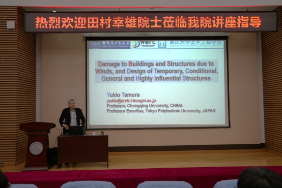 Figure 2. Academician Tamura presents wind-induced damage mechanisms and wind-resistant design of various building structures