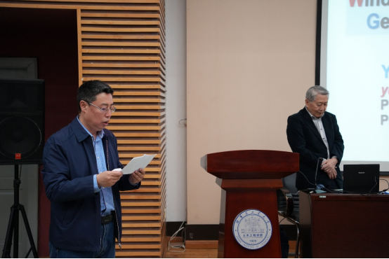 Figure 1. Dean Wu Yue introduces Academician Tamura's academic profile to students